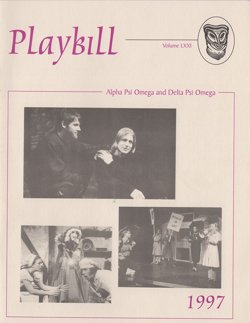 We have no Playbills from the 1990s scanned yet. Also, I only have the 1990, 1992, 1994, and 1999 paper copies. If you’re willing to help, either with scanning or by providing the missing paper copies, please contact the webmaster@alphapsiomega.org